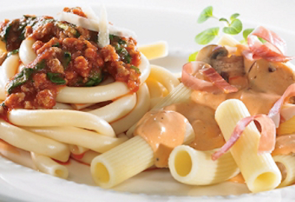 Un duo parfait : moitié bolognaise, moitié jambon-crème. Idéal pour les indécis (et les gourmands) !