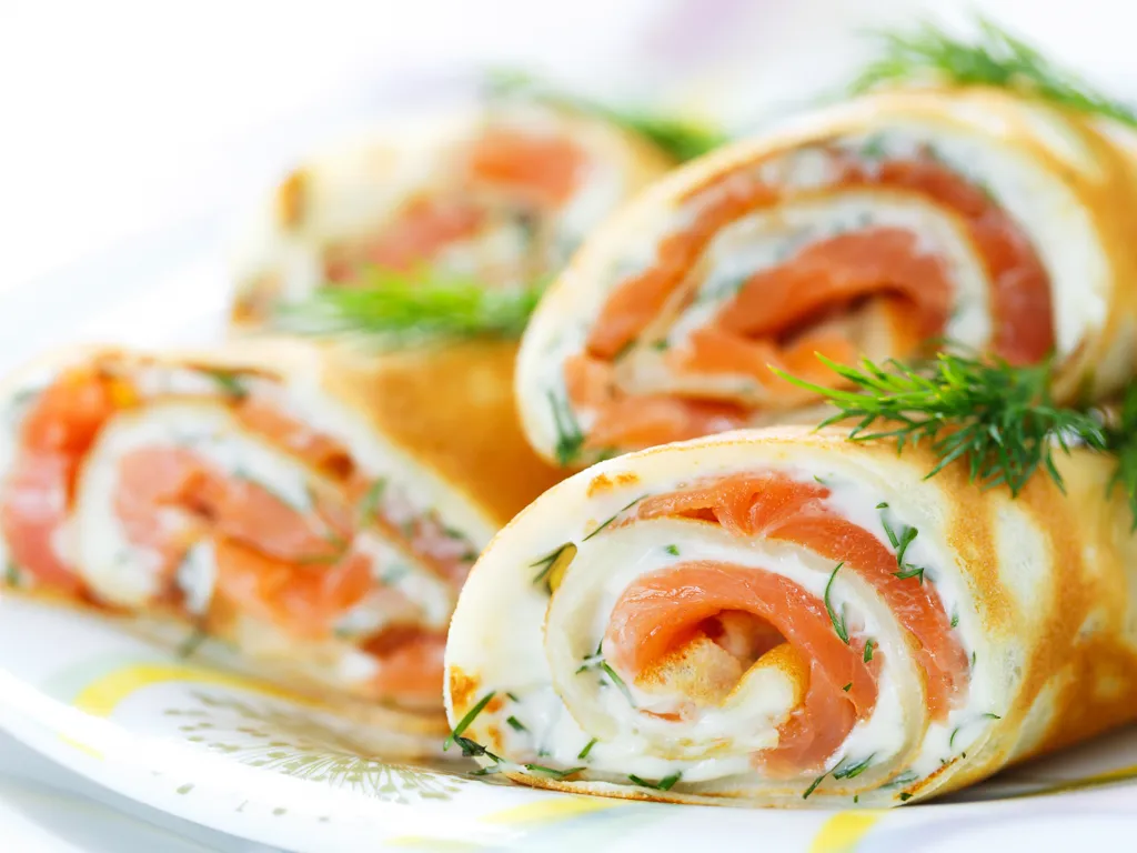Saumon fumé, philadelphia, aneth, radis, tomates, concombres, oignons frais, salade. Frais et fondant, parfait pour une pause raffinée.